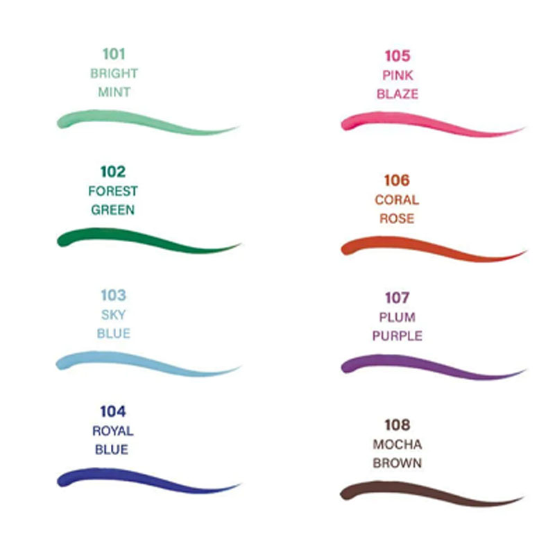 • خصوصیات:نوک نازک و منعطف ماندگاری بالا دارای پبگمنت بالا- خشک شدن سریع- در رنگ های متنوع- بدون ریزش و پخش شدن- ایجاد ظاهری جذاب تر- بدون پوسته پوسته شدن- نوک فوق العاده نازک و انعطاف پذیر- ماندگاری بالا- رنگدانه های غنی- مناسب آرایش های مد روز پاک شدن راحت با آرایش پاک کن